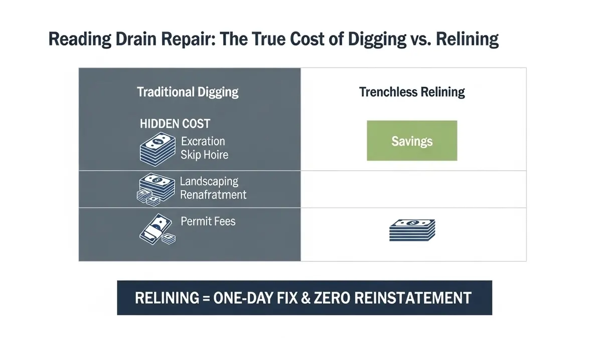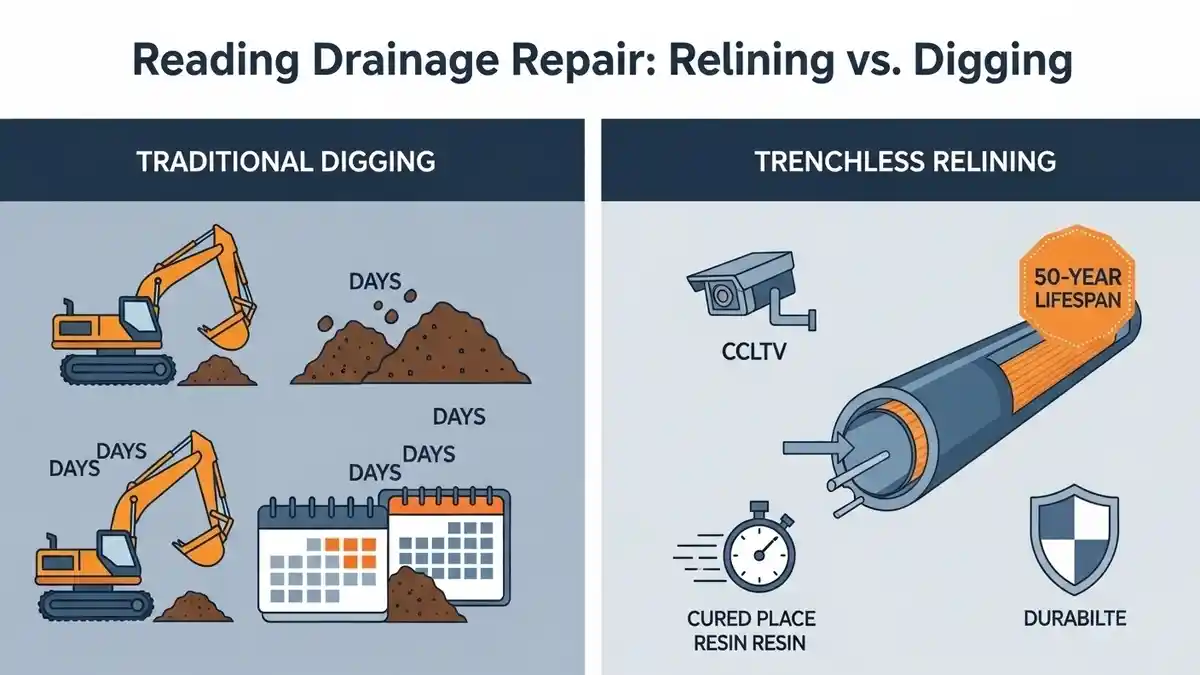 Avoid costly, messy excavations. Compare Maidstone Drain Relining vs Digging to save your home, time, and money with our expert, minimally invasive, and durable no-dig repair solutions for local drains.
